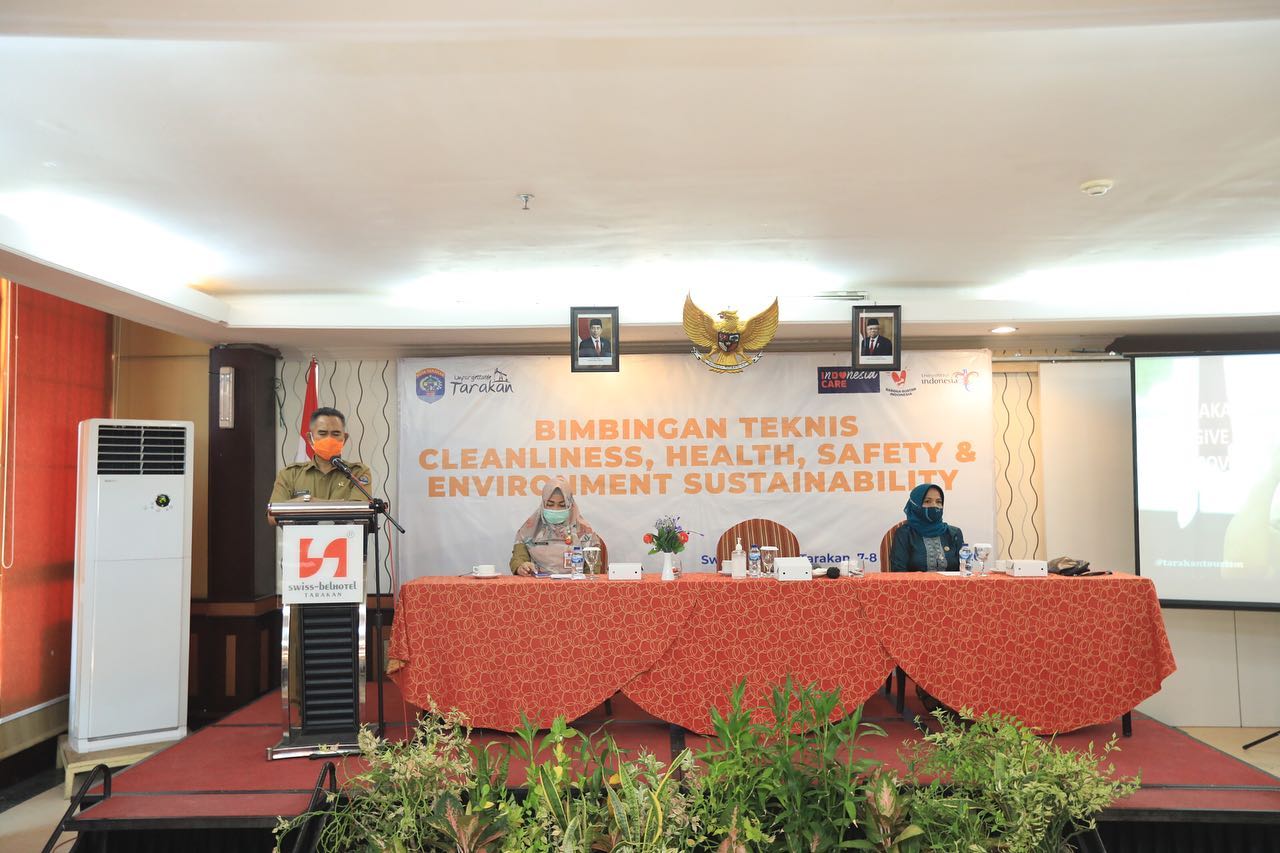 TARAKAN - Wali Kota Tarakan, dr. H. Khairul, M.Kes., pada Selasa (8/12) kembali membuka Bimbingan Teknis Cleanliness, Health, Safety, and Environment Sustainability yang dilaksanakan di Swissbel Hotel Tarakan.